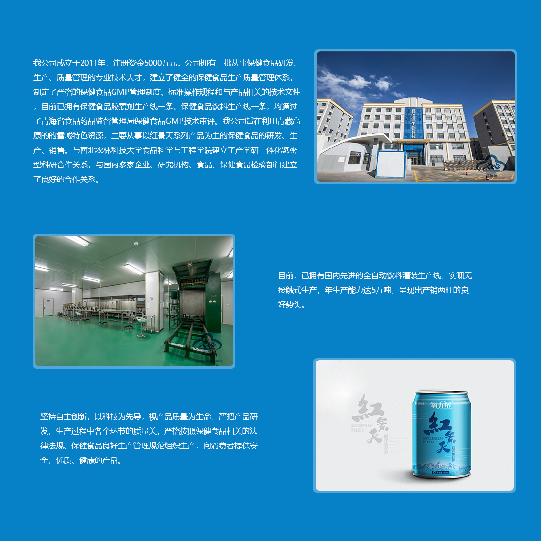 鑫池源公司立足于青海省綠色環(huán)保無污染的高品質紅景天資源,以西北農林科技大學食品科學與工程學院和青海格拉丹東藥業(yè)有限公司為技術依托,主要從事紅景天、紅枸杞、黑枸杞等高原生態(tài)植物資源的研究開發(fā)和深加工,產(chǎn)品包括“景胨”牌紅景天西洋參保健飲品、紅景天口服液、紅景天膠囊等系列產(chǎn)品。